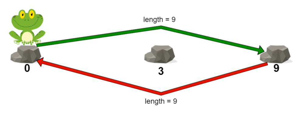 The length of a jump is the absolute difference between the position of the stone the frog is currently on and the position of the stone to which the frog jumps.